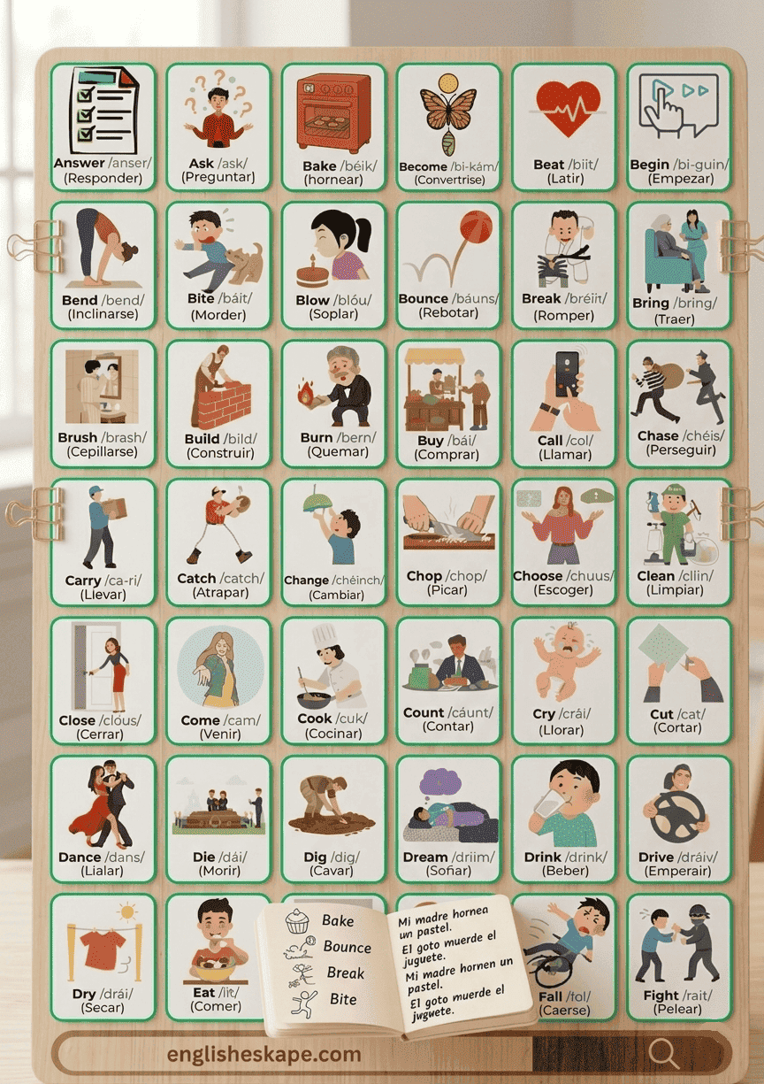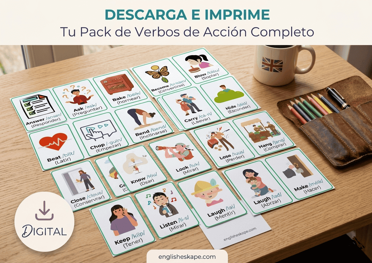 Lleva tu vocabulario al siguiente nivel con el Pack Completo de Verbos de Acción de English Eskape.